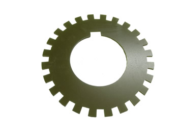 Um eine geeignete Zählerschaltung an die Impulserzeugung der Hauptwelle anpassen zu können, habe ich mir eine passende Lochscheibe mit 60 Schlitzen aus Epoxyd Basismaterial hergestellt, schwarz lakiert und auf die Hauptspindel montiert. Die Impulsaufnahme erfolgt mit einer Gabellichtschranke vom Typ CNY36.