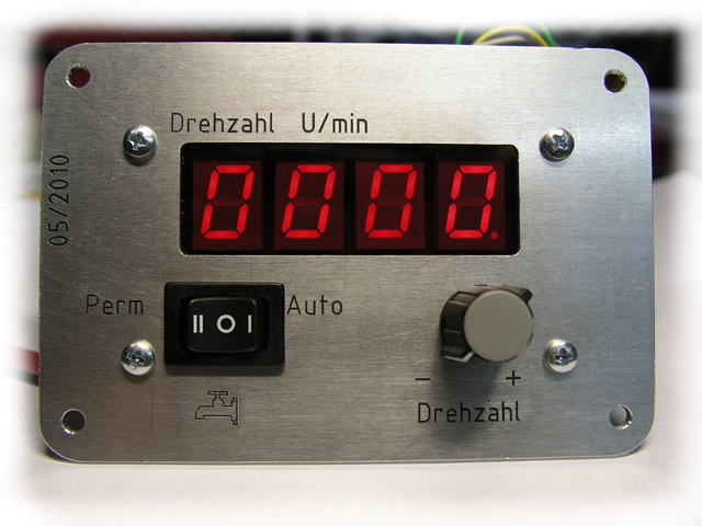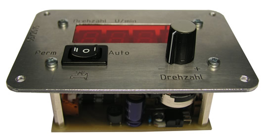 Die stufenlose Drehzahlregelung läßt sich einfach durch einen geeigneten Frequenzumrichter realisieren. Ein Bekannter hat mir ein Gerät vom Typ (Berges ACM-S2) überlassen. Um jedoch die gewünschte Drehzahl auch gezielt einstellen zu können, braucht die Maschine eine Drehzahlanzeige.